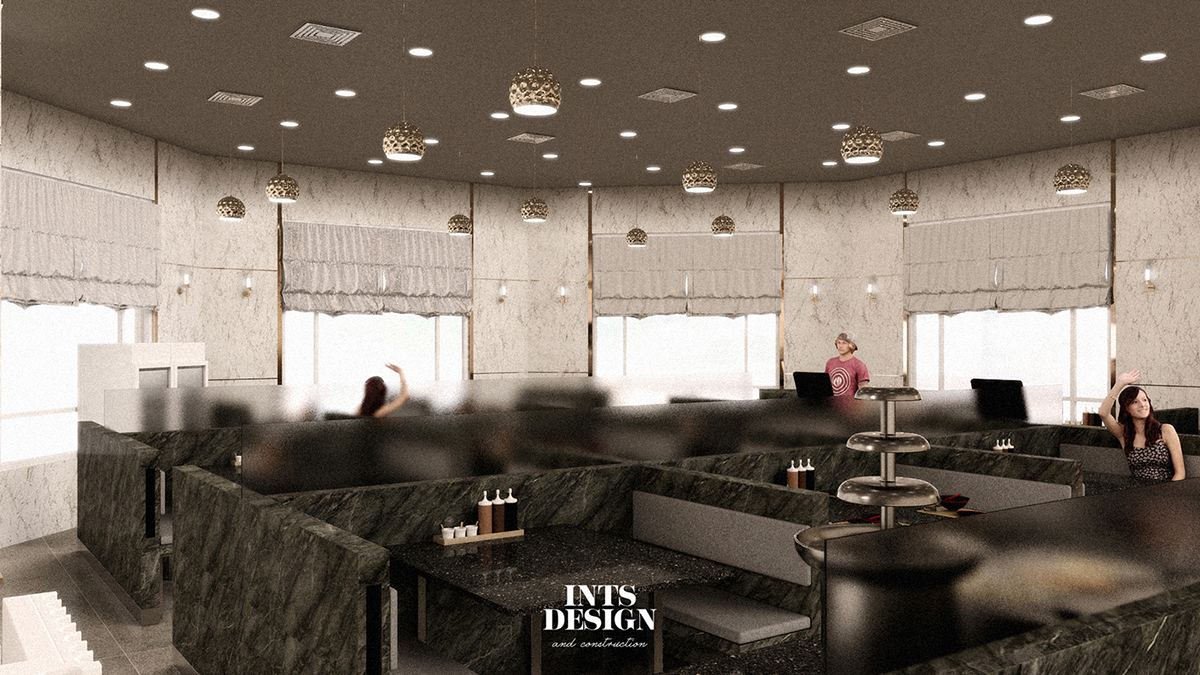 ใช้วัสดุที่ทำให้ร้านดูพรีเมี่ยม เช่น หินอ่อนสีดำ หินอ่อนสีขาว ขอบคิ้วสีทอง